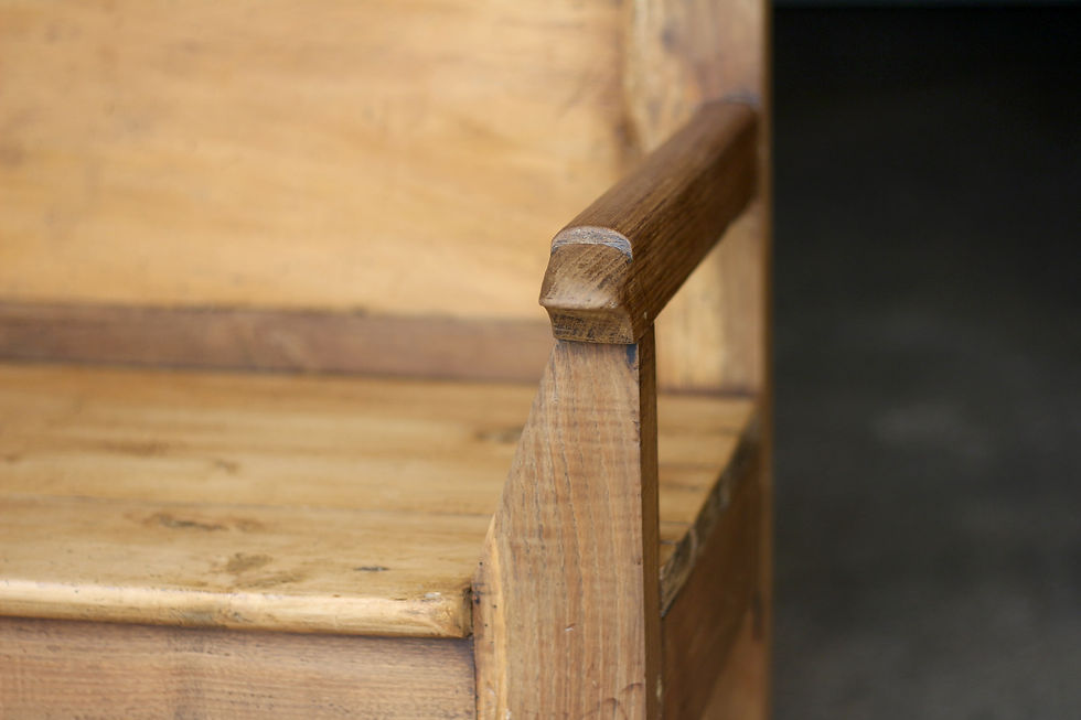 Adorable banc de sacristie en bois blond. Vers 1900.